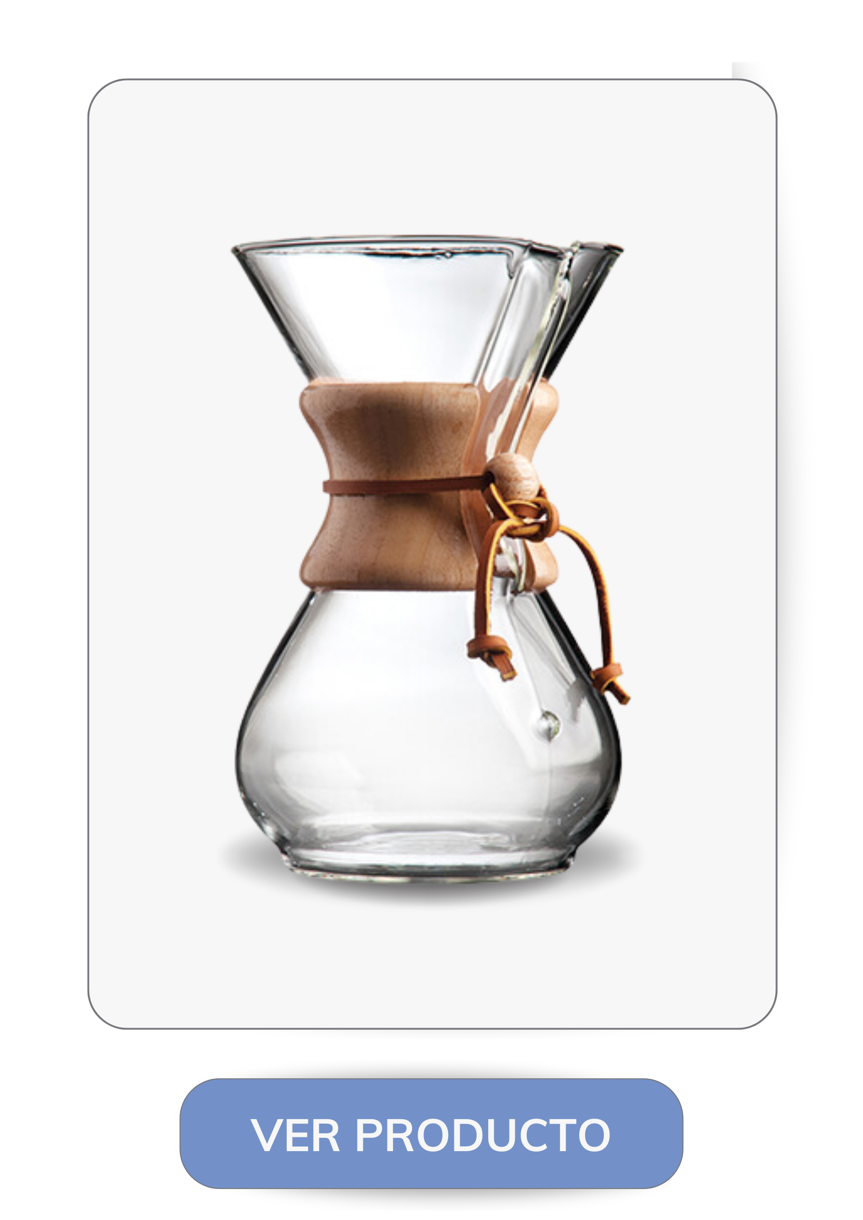 La Chemex es un elegante ícono del arte del café. Su diseño atemporal y su capacidad para producir un café limpio y brillante hacen de ella la elección perfecta para los amantes del café que buscan una experiencia de preparación meticulosa y un sabor excepcional.